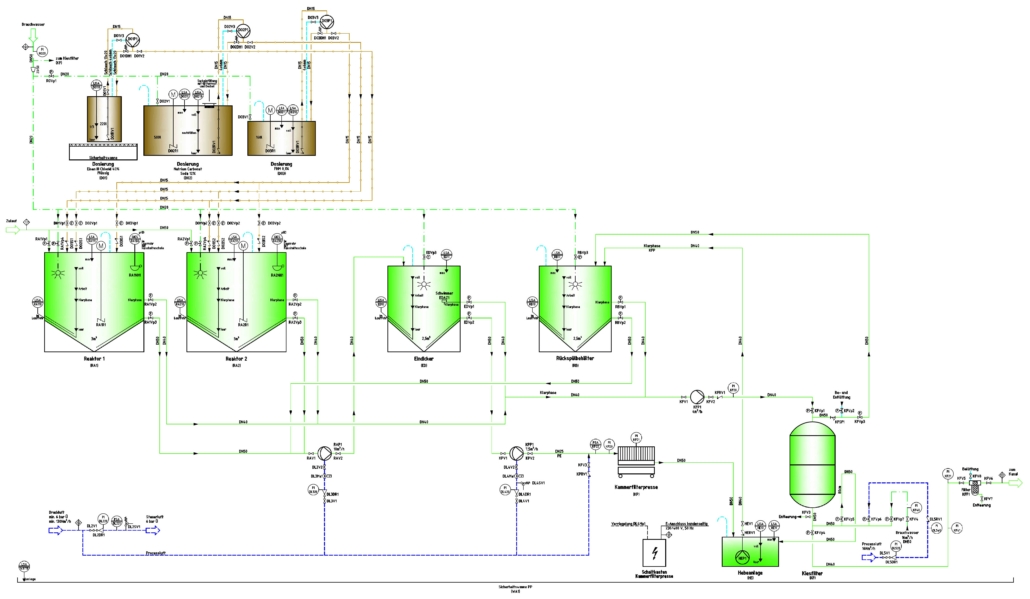 • Miitels zwei 3m³ Reaktoren und Kammerfilterpresse